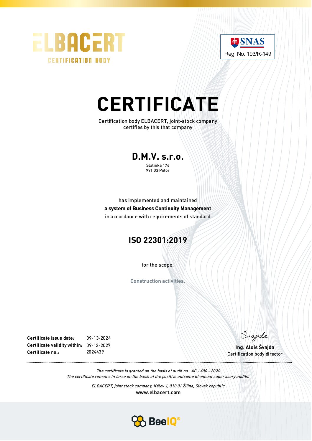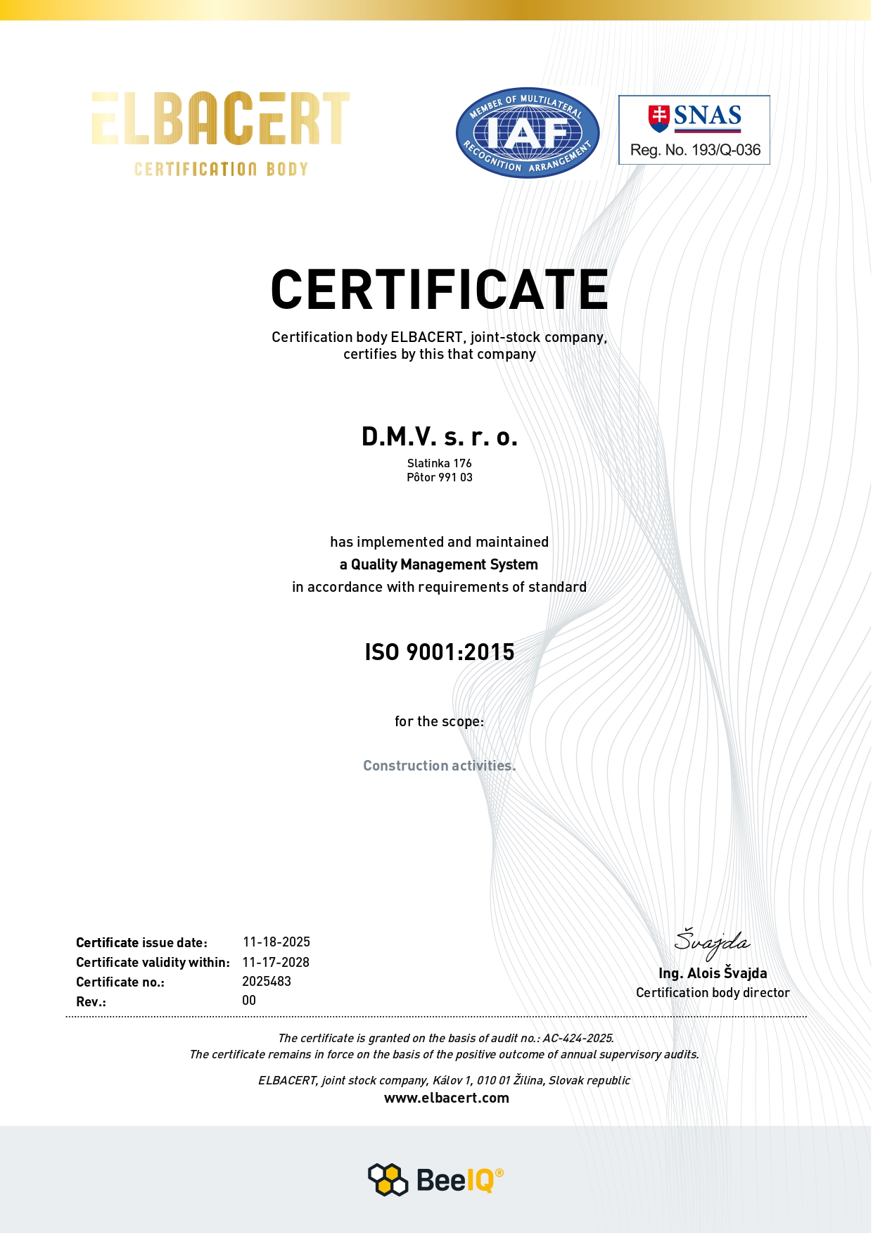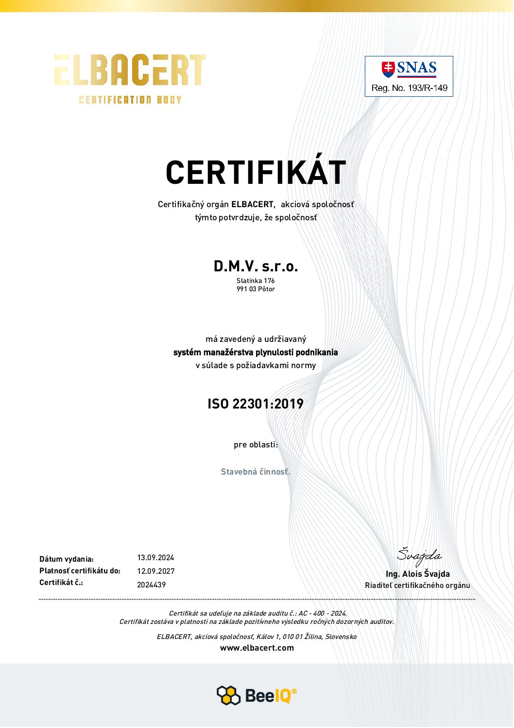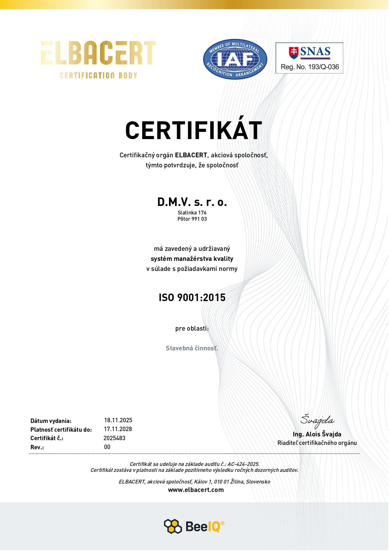 • ISO 9001Certifikácia