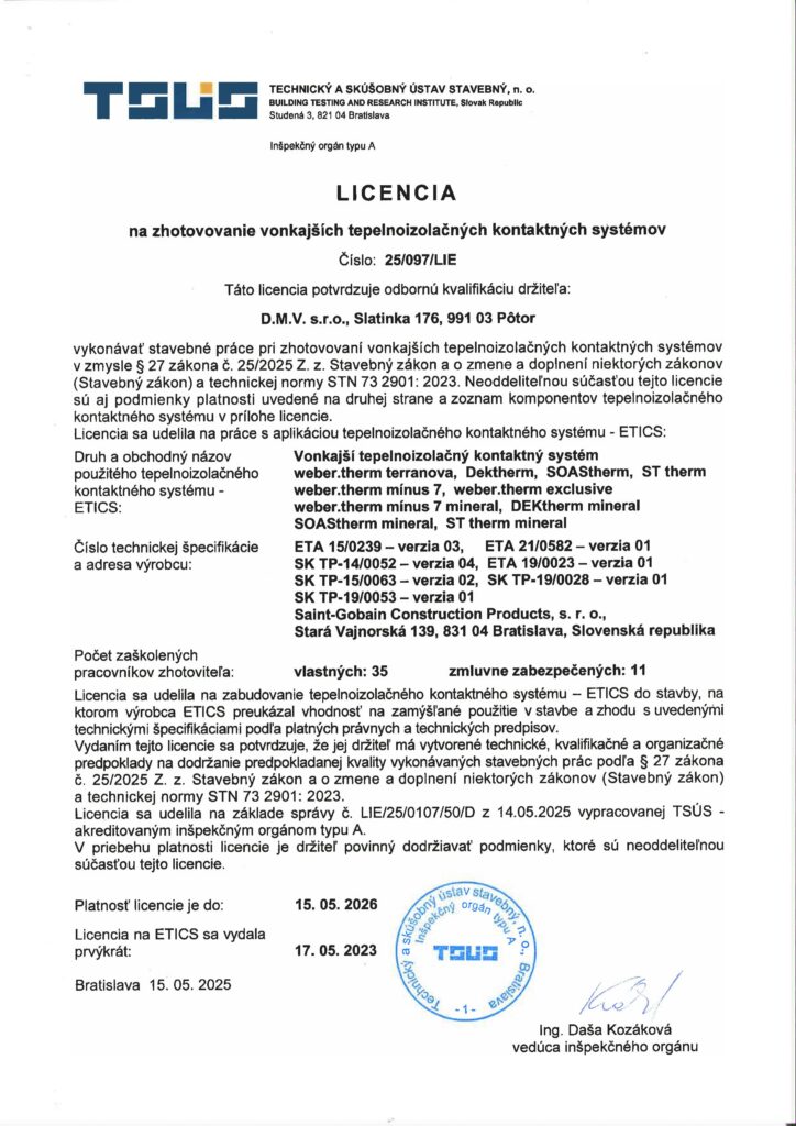 Naša spoločnosť je držiteľom všetkých potrebných certifikátov, ktoré dokazujú našu