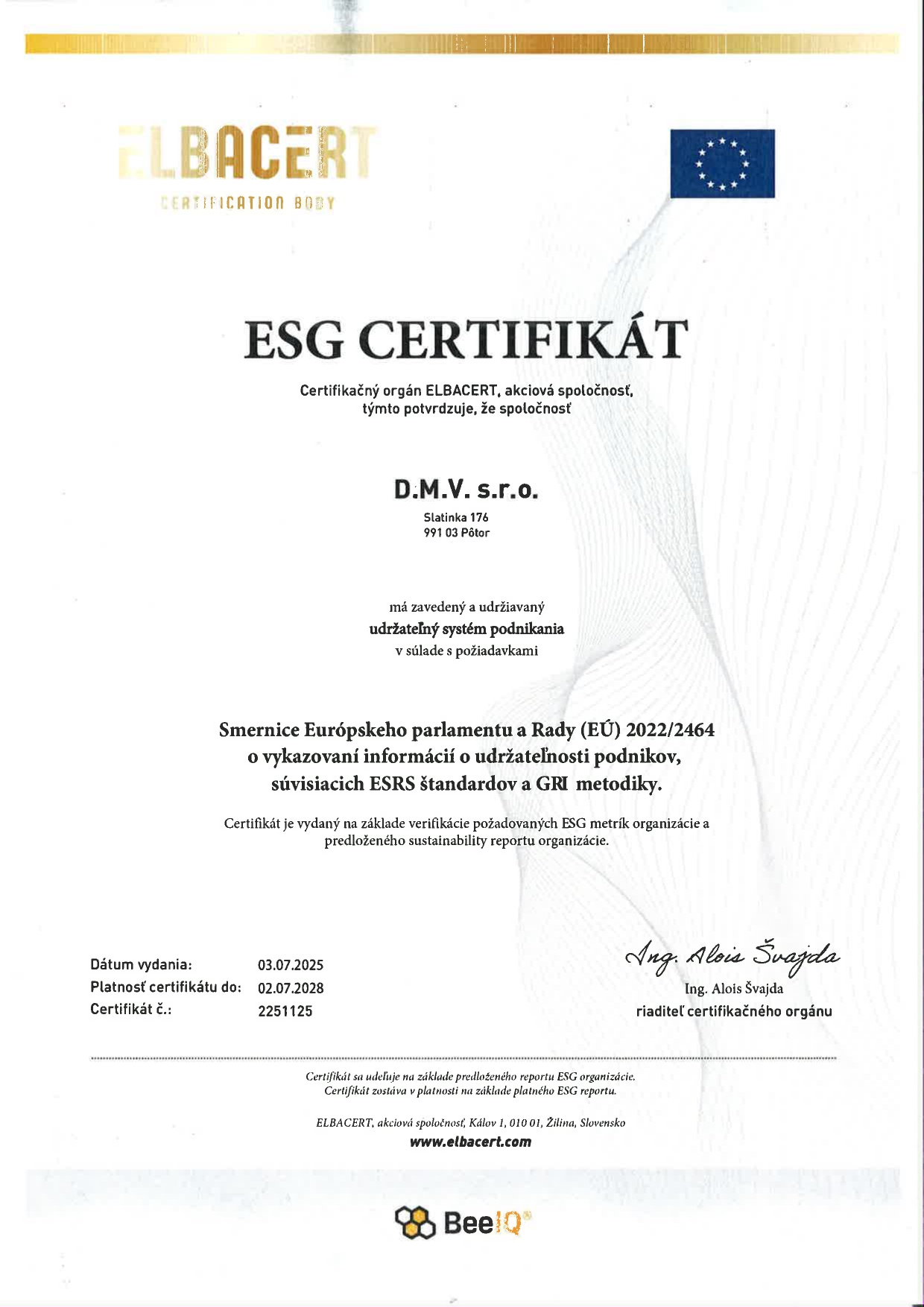 ESG CERTIFIKÁT